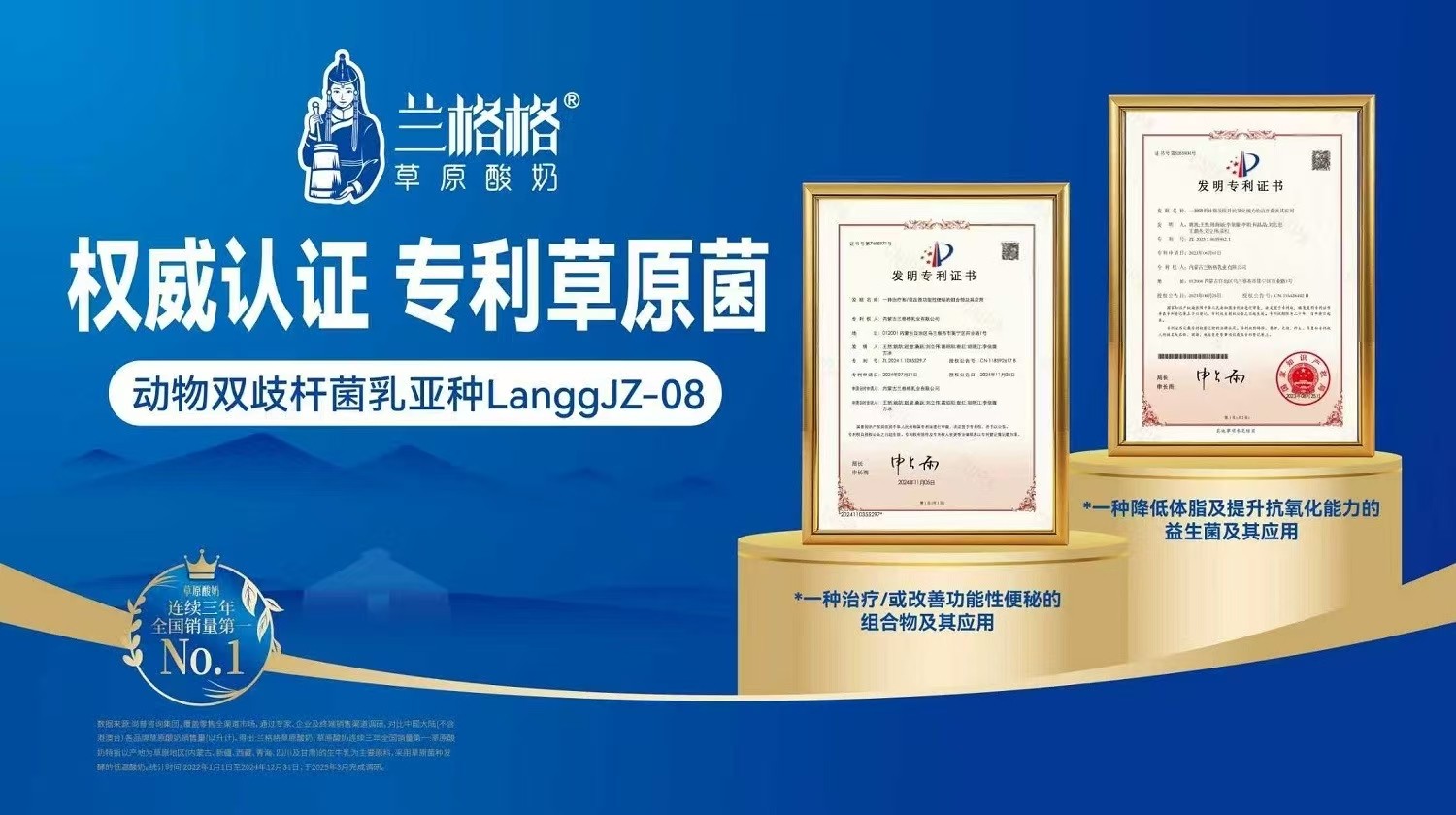 配方层面,以“24 种高活性益生菌”为核心,每瓶(720g)含720亿CFU(出厂时) 活菌,不仅获尚普第三方权威认证 “低温酸奶品类益生菌种类含量全国第一”。更适配控糖人群、老人、儿童、孕产妇等全人群需求,完美呼应iSEE“精准营养”的创新趋势;技术上,依托与中国农业大学合作的研发成果,采用内蒙古草原原生菌株(含明星菌株动物双歧杆菌乳亚种 LanggJZ-08,获两项发明专利),搭配品牌专业冷链配送体系(全国最远T+5到岸),确保益生菌“活着抵达肠道”,解决消费者 “补菌难吸收” 的痛点。