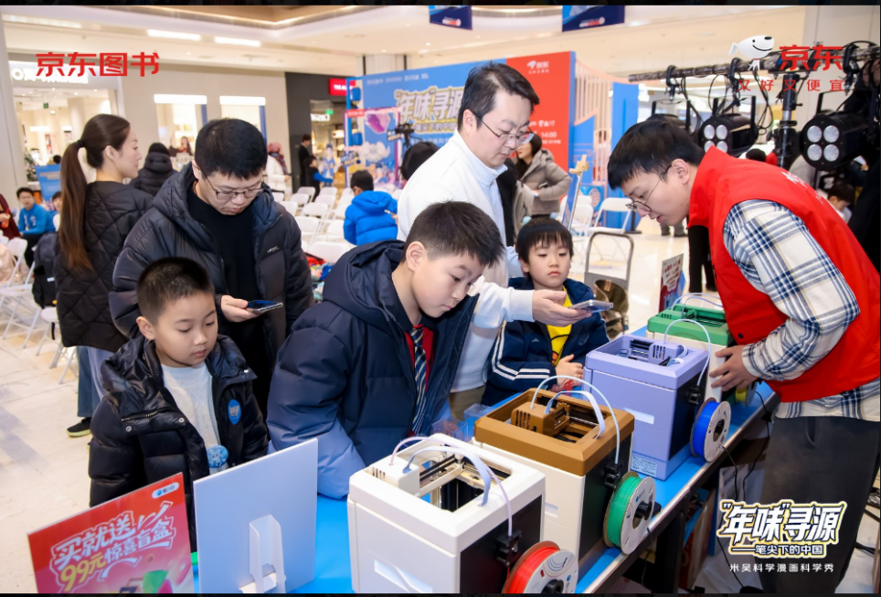 近日,京东图书成功举办“年味寻源——笔尖下的中国”《米吴科学漫画》线下科学互动签售会。活动现场,科学秀演示妙趣横生,互动实验引人入胜,孩子们在动手实践中感受科学魅力,体验探索乐趣。在这场科学与阅读交融的盛宴中,智小白3D打印机也惊艳亮相,以其独特的科技互动形式,与小朋友们近距离接触,生动展示科技与创意碰撞的无限可能,成为活动现场备受关注的焦点之一。