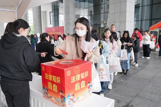 在普法活动现场,沙包答题、套圈学法以及盲盒学知识等项目备受青睐,职工们通过互动环节,深入了解了劳动维权、社会保险等相关知识。“平时总担心加班没加班费,今天答题还能学知识,太实用了!”参与套圈答题活动的企业职工李小姐微笑着表示。