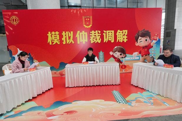 本次活动设置模拟仲裁庭体验环节,真实还原了劳动纠纷仲裁场景,由现场职工扮演仲裁员、申请人、被申请人等角色,直观地展示仲裁流程,使职工能够沉浸式学习纠纷化解技巧。开设“维权马上办”与“纠纷马上问”专区,由五部门专业人员及律师提供现场咨询服务,为职工解答法律疑问,普及相关法律知识,实现法律服务“零距离”。