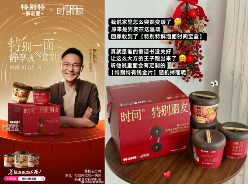 为了让这种情感产生互动,特别特鲜泡面还推出了限量版的“特别特鲜泡面时间宝盒”。这款礼盒成了连接用户的社交纽带。