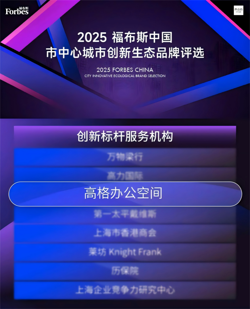据了解,福布斯中国的认证,是对高格办公空间在创新服务、运营效率及客户满意度等方面综合表现的高度评价。自2011年成立以来,高格始终以“为企业持续创造美好办公体验”为使命,通过不断的产品创新与服务升级,构建起全国10城50+高端办公空间的运营网络,管理面积超45万㎡,客户满意度超98%,空间复购率超65%,0负面舆情,这些硬核数据,是高格获得福布斯认证的坚实基础。