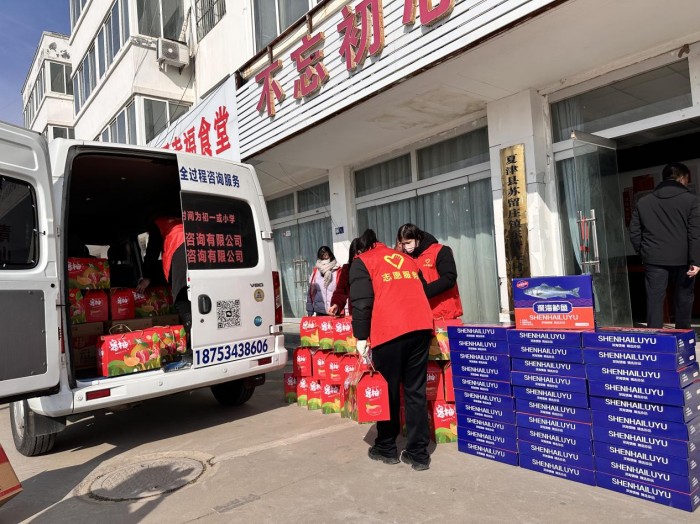 季国志带队前往夏津县苏留庄镇义和庄村和东管庄村开展慰问。活动现场暖意融融,志愿者们将花生油、海鲈鱼、新春礼盒等暖心年货整齐摆放。季国志一行为村内七十余名老年人和困难群众分发年货,与老人们亲切交谈,详细询问身体状况和生活需求,叮嘱大家注意防寒保暖、保重身体。