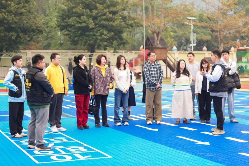 冬日桂南,暖意绵长。奈尔宝联合创始人徐晶、美团乐生活全国大客户负责人许凌莉、美团企业社会责任总经理、美团公益基金会秘书长周露、壹基金副秘书长聂良非等,作为志愿者在专业指导下,完成了拼接地板铺设、儿童游戏器材组装等工作。