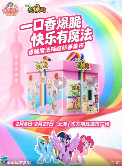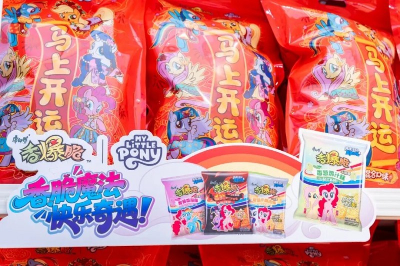 说白了,消费者买的不是一包干脆面,而是对小马宝莉IP的情感认同,是加入一个社群的门票,是持续的互动乐趣。这种玩法,不仅比单纯的贴牌联名高级多了、赚钱多了,而且是它是长周期、可复制,且能产生良性消费者反馈的。