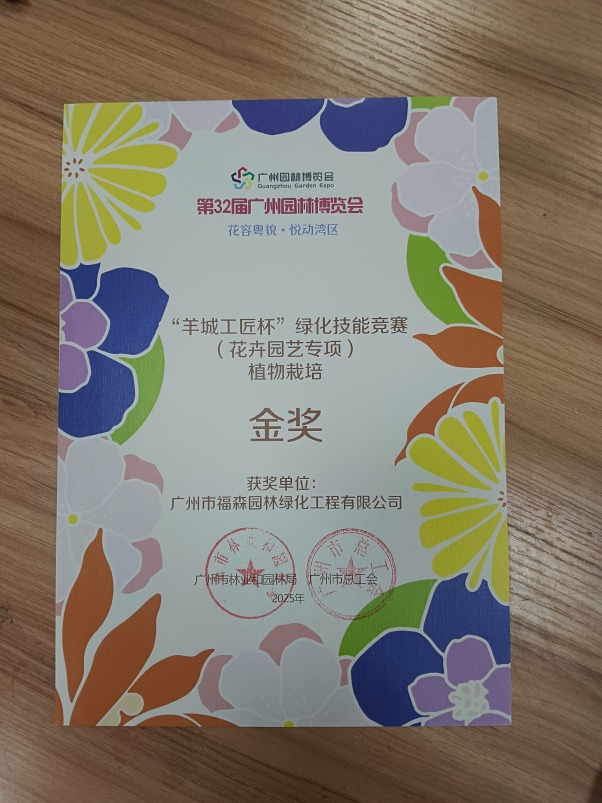 “这些树啊,我们像养孩子一样养了二十多年。”福森园林的负责人笑称。从选育、扦插到造型修剪,每一道工序都凝结着两代园林人的匠心。直到2024年,这批“隐士”终于走到了聚光灯下——在广州云溪花园举办的园林花卉新优品种大赛中,它们一举夺得了特等奖。