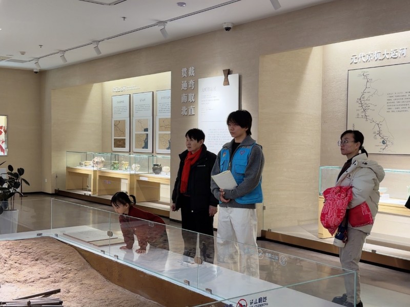 调研过程中,实践队成员充分发挥青年志愿者的服务作用,结合提前梳理的史料知识,为现场参观的市民、青少年游客提供志愿讲解服务,用通俗易懂的语言解读运河历史故事、治水智慧与文化内涵,引导更多人了解大运河文化遗产的价值。同时,成员们随身携带调研笔记,认真记录展品信息、史料内容,围绕运河文化的当代传承、青年传播路径等话题开展现场交流研讨,为后续实践成果的梳理总结积累了详实的一手资料。