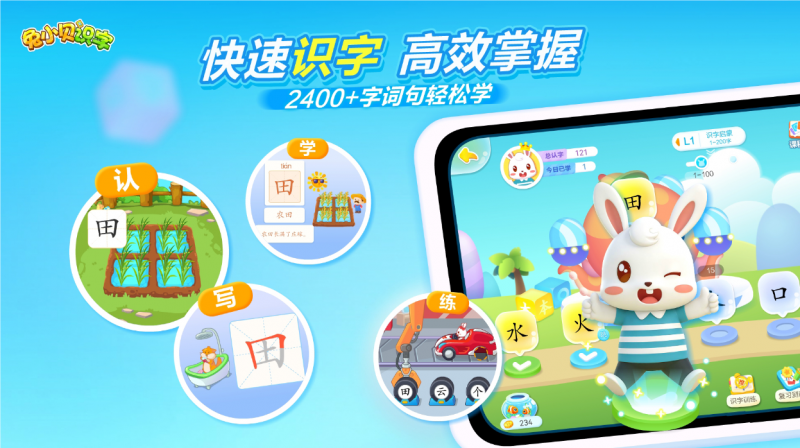 健康守护与高性价比更添产品竞争力。30 分钟强制休息+无广告干扰的设计守护孩子视力与专注力,单次付费终身有效的模式,相较于同类订阅产品性价比极高。从学龄前汉字认知到幼小衔接系统积累,从单学科启蒙到五维能力同步发展,兔小贝识字以科学的教法、丰富的内容、便捷的体验,让家长告别多 APP 切换的繁琐,让孩子在快乐中实现全面启蒙,轻松衔接小学学习。
