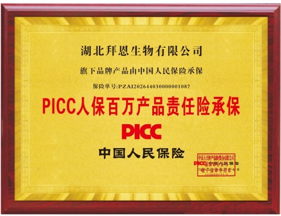 2026年3月17日,中国人民财产保险股份有限公司(PICC)对湖北拜恩生物有限公司正式出具产品责任保险承保,并形成电子保单。