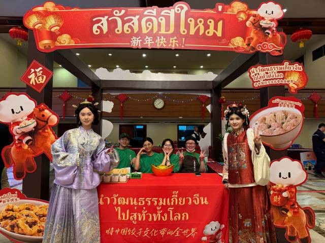 活动现场,品牌泰国门店工作人员现包现煮手工水饺,为现场带来“烟火气”十足的中国新春氛围。品牌还专门打造马年新春主题档口,身着明制汉服的员工为嘉宾讲解饺子的由来与春节民俗,从制作技艺到文化内涵,让来宾在品尝美味的同时,感受中国饺子文化的独特魅力,实现了从“舌尖”到“心间”的精神共鸣,让中国味道成为中泰友好交流中最温暖的共情纽带。