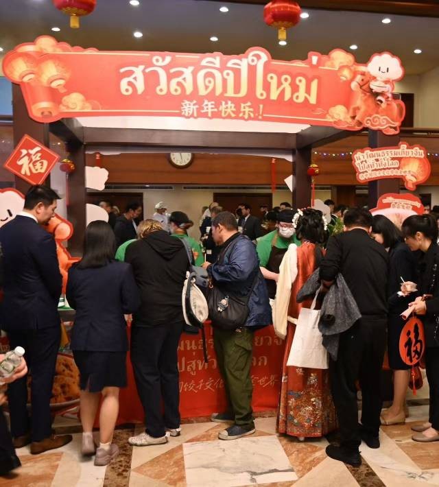 除了在消费市场站稳脚跟,袁记云饺更以美食为桥,登上中泰文化交流的舞台。2026年2月11日农历小年,中国驻泰国大使馆举办马年新春招待会,700余名在泰华人华侨、中资企业及留学生代表共贺新春,袁记云饺作为大国餐饮代表惊艳亮相,以一碗地道水饺践行“舌尖上的饮食外交”。