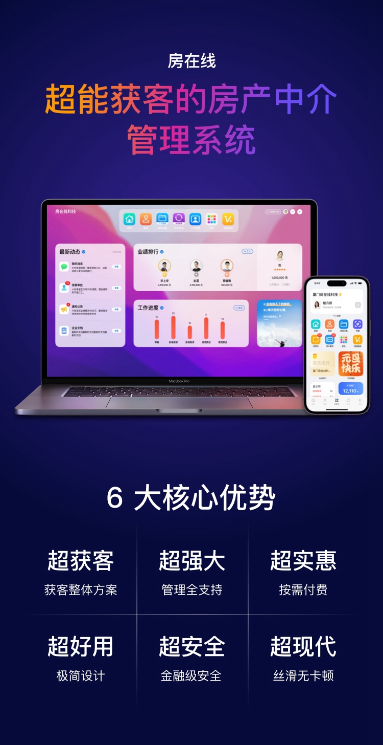 房在线房产中介管理系统已服务超6万多家房产中介公司,60多万房产经纪人,千位房产新媒体大V,覆盖全国90%以上城市。
