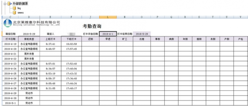 售后维修管理方面,勤哲Excel服务器平台对派工安排、维修报价、现场维修记录以及设备调拨等信息进行统一管理。各类业务表单之间通过公式与数据关联实现自动联动更新,使售后服务全过程形成完整记录,既便于追溯,也显著提升了运维管理效率。同时,勤哲Excel服务器平台还支持与外部系统的灵活对接。例如通过连接考勤数据库,员工可以直接