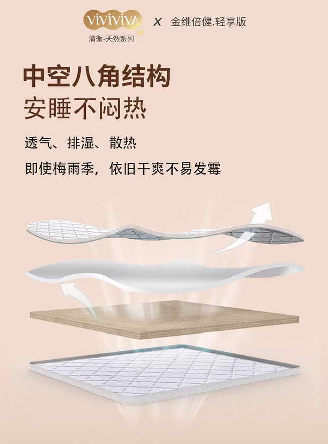 透气中空结构:床垫内部的中空八角透气结构,能形成空气微循环通道,高效导湿散热,哪怕是南方潮湿地区,也能保持垫体干爽,避免闷湿发霉,让出租屋的睡眠环境始终清新。
