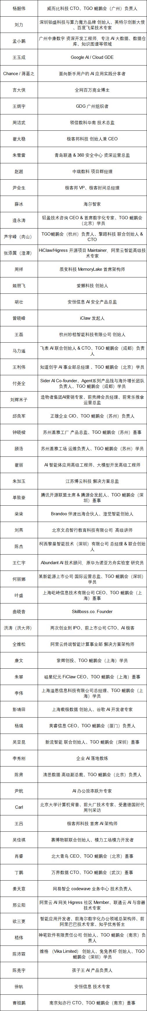 讲师名单(排名不分先后)
