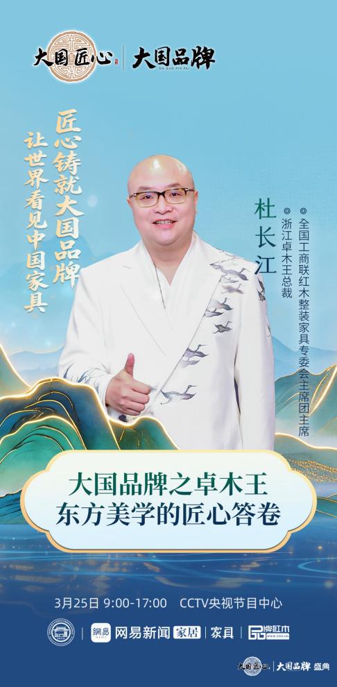 3月25日,“大国品牌盛典”在CCTV-17央视节目中心盛大启幕。本次活动以“匠心铸就大国品牌,让世界看见中国家具”为核心主旨,汇聚全国行业领导、权威专家与标杆红木企业领袖,共商红木品牌发展大计。卓木王在盛典中精彩亮相,并以一场品牌发布,向行业与社会展示了其半个世纪的匠心传承与进阶之路。
