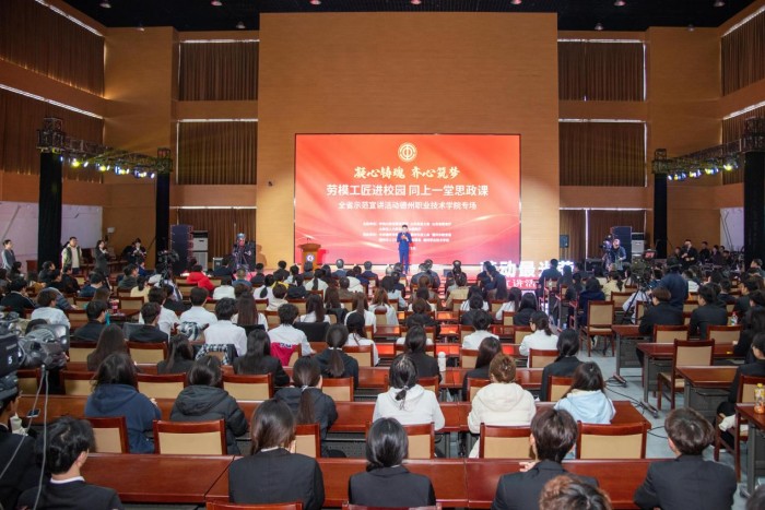 3月31日下午,“凝心铸魂 齐心筑梦——劳模工匠进校园 同上一堂思政课”山东省示范宣讲活动在德州职业技术学院举行。近400名师生齐聚一堂,共同聆听劳模故事,感悟劳动精神,汲取榜样力量。