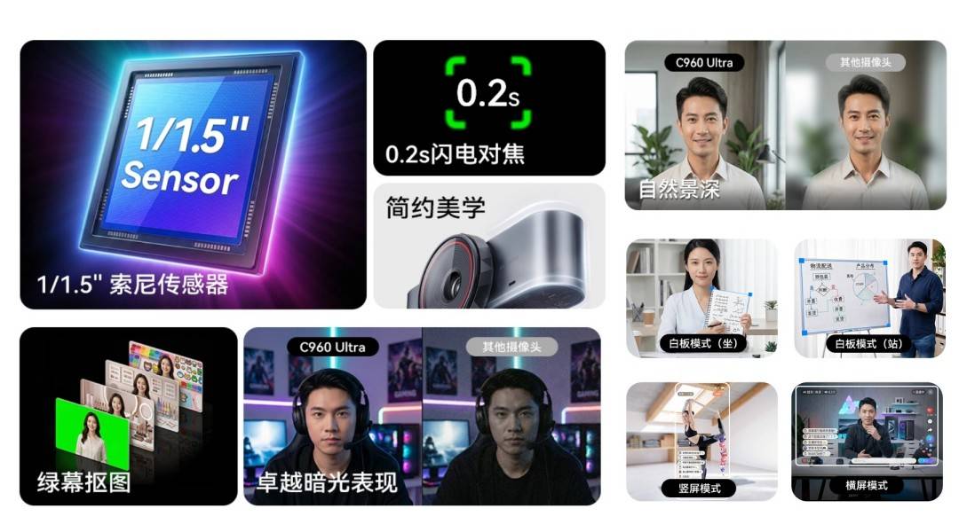 A3: C960 Ultra是C960系列的旗舰升级款,主要核心升级点:1/1.5英寸大底传感器、4K分辨率、PDAF相位对焦、铝合金机身、配套软件壹秘智影。