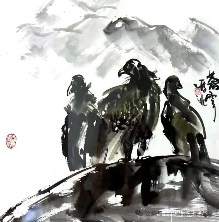 他在大写意的传统中挥毫,是中国水墨画中最具原始力量,最不可逆转的方式,每一笔落下都无可收回,每一丝迟疑皆无处遁形。冯冰所传导的,正是古代画家推崇的气韵生动:精神穿透物质时那活生生的共鸣。他笔下的藏獒,不是在绢帛上静止地摆姿。它们在蓄势。它们在散发气场。它们以顶级掠食者统摄整片领地的方式攫住观者的目光。那种静止,不是平静,而是蛰伏的力量。