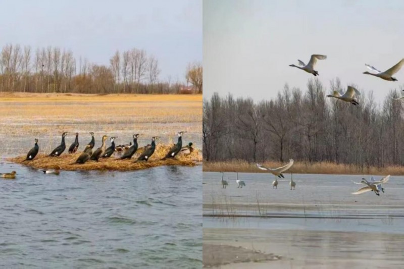 亚洲最大沙漠水库的奇迹,在于沙海与碧水的共生。丹顶鹤、白鹳等珍稀鸟类在此栖息,万鸟翔集时水天一色,宛如生态画卷。春季水库解冻,芦苇泛绿,可乘船穿梭于沙洲之间,近距离观察水鸟筑巢;或沿木栈道徒步,看沙丘与湖水交界处的波纹,仿佛大地与天空的对话。这里没有商业化的喧嚣,只有风吹沙鸣、鸟语水声,是逃离城市、与自然对话的绝佳去处。