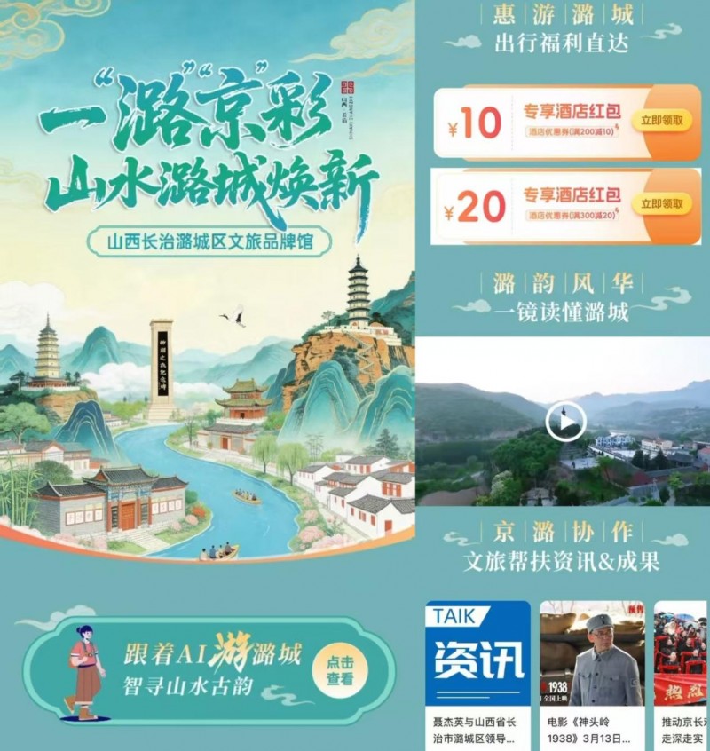 想解锁潞城的山水密码?AI智能游能够带你探访隐秘古村,推荐最出片的峡谷转角。别担心预算,“惠游潞城”送上专享红包——满100减10、满300减20的酒店券,帮你省出一顿地道的潞城风味。想先睹为快?“潞韵风华”用一帧帧精彩画面,带你读懂古城的独特气质。这里不只有风景,“京潞协作”专区还藏着两地携手的故事,让旅行多了一份温度。