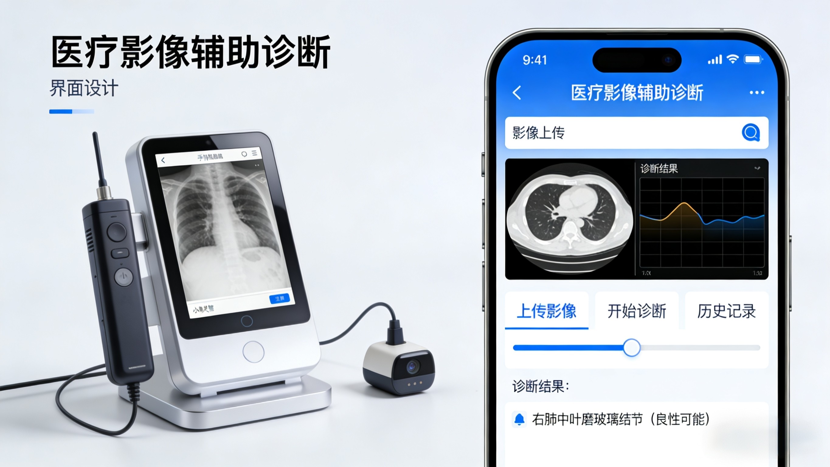 当前,我国基层医疗机构普遍存在专业影像医师短缺、设备算力不足、诊断流程繁琐等问题,偏远地区群众常面临“拍片易、阅片难、转诊慢”的困境。针对这一痛点,团队融合深度学习、轻量化模型压缩、端侧AI推理与医疗数据安全技术,打造可在手机、平板等普通移动终端运行的智能诊断系统,无需高端硬件、无需依赖高速网络即可完成影像智能分析。