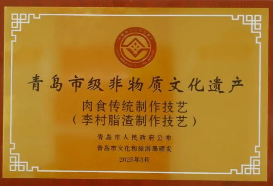 李村脂渣传统制作技艺,是根植于青岛本土的民间非遗瑰宝,于2019年入选城阳区级非物质文化遗产代表性项目名录,这项始于清光绪二十九年(1903年)的古老手艺,至今已传承五代、历经120余年风雨,始终以口传心授的方式,保留着传统肉食制作的核心精髓。