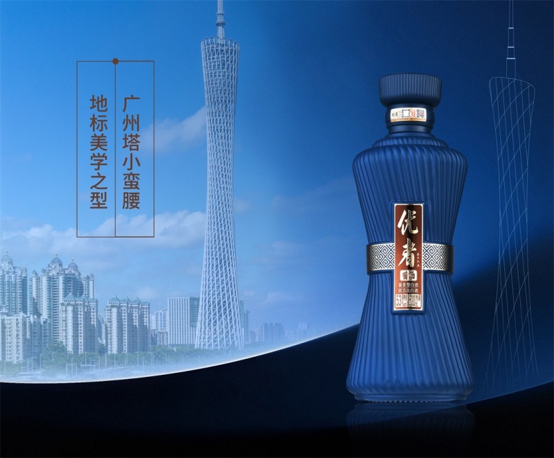 如果用一个词形容优者酱酒鉴藏的瓶身,那就是——过目不忘。它没有沿用传统酱酒方正敦厚的保守造型,而是大胆提取了中国第一高塔、粤港澳大湾区核心地标——广州塔的“小蛮腰”流线型轮廓。收腰弧度不仅让视觉瞬间聚焦,更完美贴合手掌持握的工学曲线,举杯倒酒间,手感温润而笃定。环绕瓶身的回形纹,则是另一重东方美学的点睛之笔。这道千年传承的传统纹样,形如汉字“回”,民间雅称“富贵不断头”,寓意基业绵长、福运不绝。自古便是皇家礼器与传世奢侈品的经典符号,如今被郑重地镌刻于瓶腰,让每一次举杯,都暗含了“吉利永长”的庄重祝福。而最令人惊艳的,是那抹深海蓝。在高品质亚克力与精细磨砂工艺的加持下,瓶身呈现出如绸缎般的高级哑光质感,低调、沉稳,却又藏着不言自明的格局与胸襟。握于手中,不似酒器,更像一件当代轻奢艺术品。