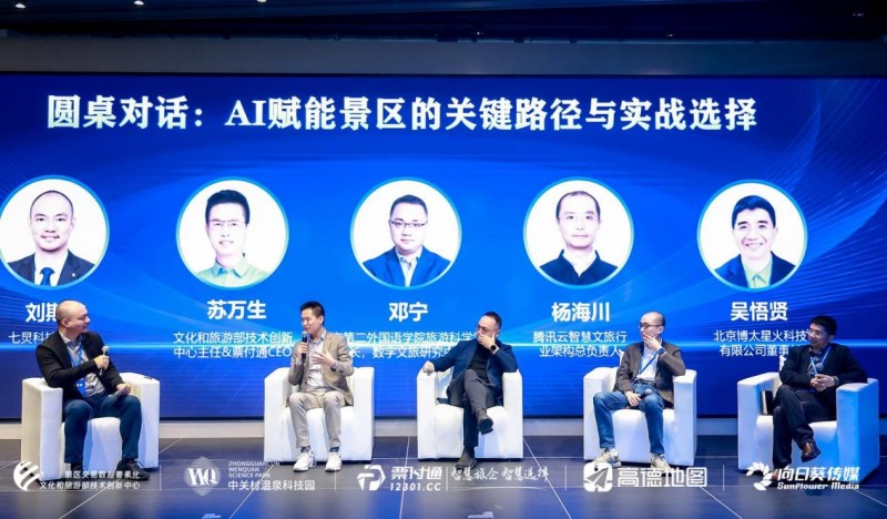 来自一线的实践成果在峰会的圆桌对话中引发了更深层次的行业碰撞。围绕“AI赋能景区的关键路径与实战选择”及“AI时代文旅的温度、定力与可持续”两大主题,原文化和旅游部信息中心副主任信宏业、北京市海淀区商务局副局长刘潇、宜宾市文旅局副局长刘勇、文化和旅游部技术创新中心主任兼票付通CEO苏万生、腾讯云智慧文旅行业架构总负责人杨海川、北京博太星火科技有限公司董事长吴悟贤、中青旅遨游智慧文旅总经理程建滨等嘉宾分别参与研讨。对话从技术供给、数据底座、存量盘活、政策引导等维度展开,为行业提供了兼具前瞻性与实操性的启发。