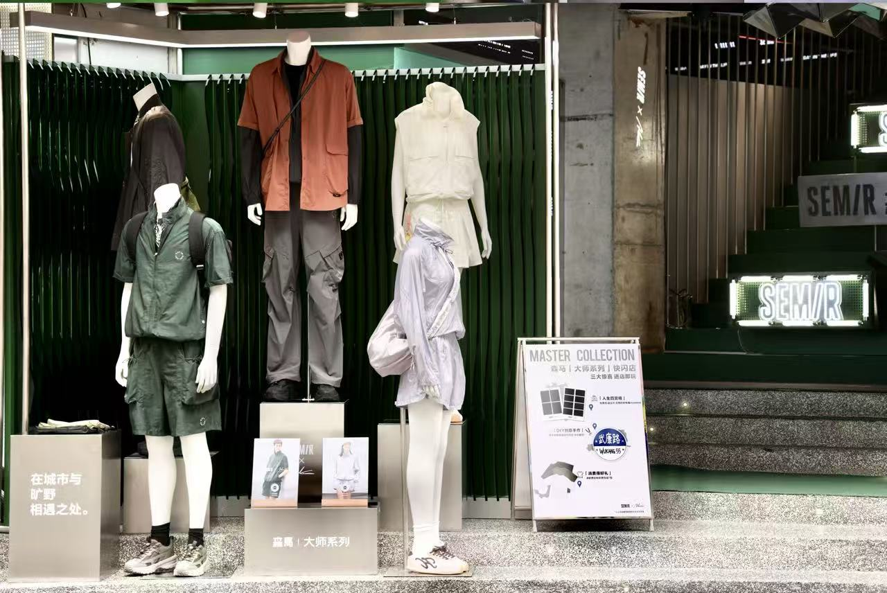 随着「大师系列」的推出,森马同步开启与品质人群对话的体验场域升级。4月9日至12日,在上海武康路55号的梧桐光影下,森马「大师系列」限时快闪店正式亮相。空间以“城市与旷野”为灵感,将旷野心境搬进都市日常。在上海这座繁华都市,为所有人打造了一片触手可及的自由旷野;同时具备武康路核心街区的地理优势加持,迅速吸引了众多达人与潮流品质客群前来打卡。