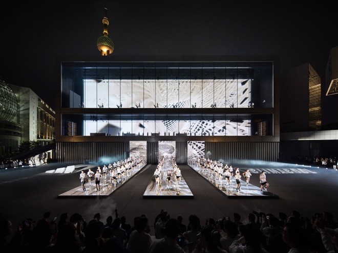 发布会整体叙事由专业运动表现延展至风格与美学表达。模特以序列形式展开,搭配CLIMACOOL风巢鞋款与阿迪达斯先锋运动系列服饰共同构成统一的未来运动风格造型。精英运动员们以未来感造型再次加入序列,从运动表现转入风格表达,进一步拓展CLIMACOOL在未来运动美学语境中的多维呈现。