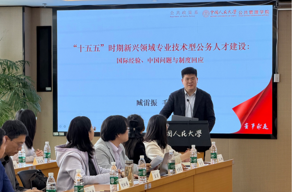 《新兴领域专业技术型公务人才培养与国家治理现代化》课题组组长、中国人民大学公共管理学院臧雷振教授,以《“十五五” 时期新兴领域专业技术型公务人才建设研究:国际经验、中国问题与制度回应》为题作主题报告。报告系统梳理了 OECD、欧盟、英国、美国及巴西、印度等国家和地区的实践经验,提炼出能力本位化、岗位专业化、培养体系化、治理协同化四大共性趋势,为我国人才建设提供重要借鉴。