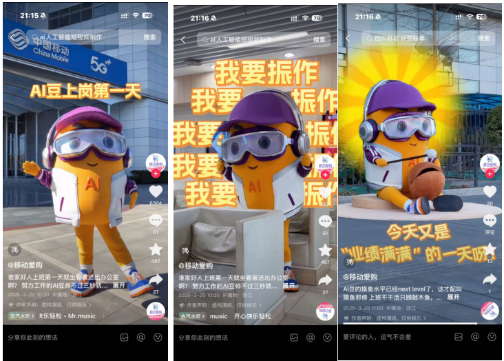 就连一向高冷的通信行业,也不乏突破性探索——例如软银的"白户家"IP,以白色柴犬“爸爸”的形象成为国民级符号,用接地气的家庭叙事拉近距离。而近期中国移动推出的《AI豆豆》动画短片,更是借AI漫剧的热潮跳出“专业高冷”的行业标签,塑造出敢吐槽职场内卷、渴望松弛躺平的鲜活的AI豆IP形象。其推出的6集原创动画,以AIGC技术打造,扎根家庭日常与烟火场景,聚焦年味变淡、职场内耗等大众共性议题,用细碎的生活叙事替代生硬的品牌宣传,靠真实感引发年轻用户自发讨论,成为通信行业IP年轻化的一抹亮色。