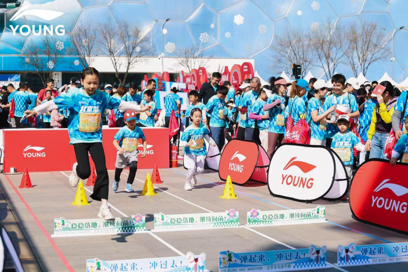如果说赛道是体能的竞技场,那么李宁YOUNG精心打造的赛后互动区,则是亲子默契的“练兵场”。将青少年体能训练的核心要素——平衡、速度、协作——巧妙融入了互动环节。