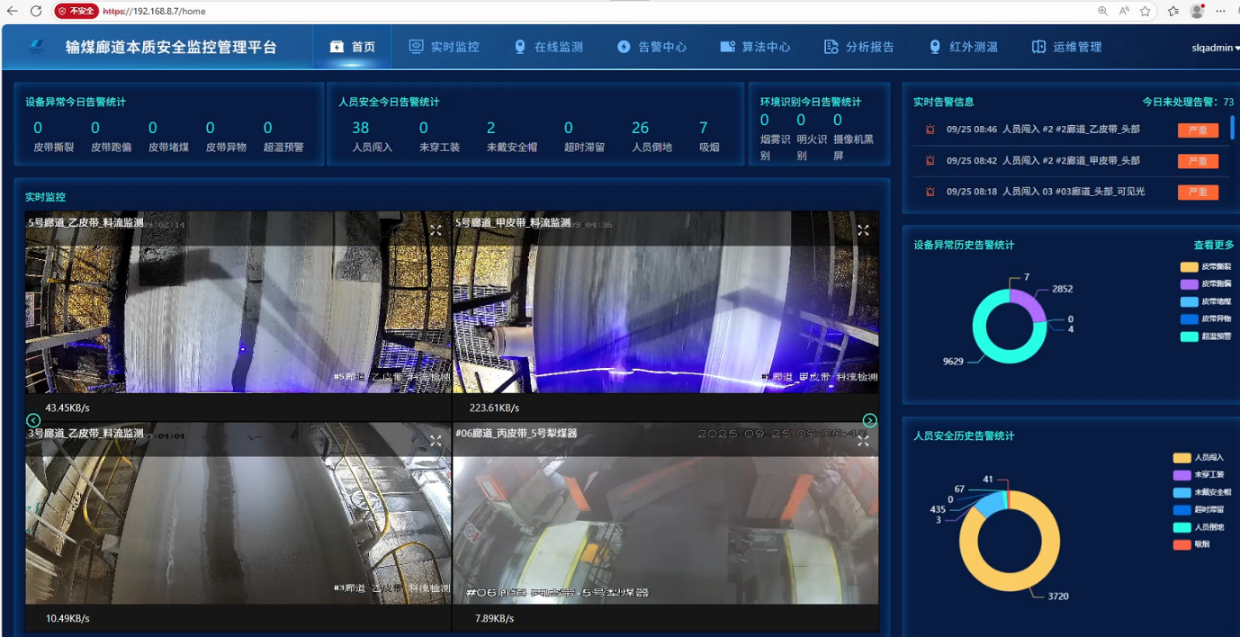 作为火电生产的核心环节,输煤廊道巡检长期面临高粉尘、低光照、强振动的恶劣作业环境,传统人工巡检模式存在效率低、成本高、人为疏漏风险大等痛点,难以满足现代电力系统安全稳定运行的高要求。为破解这一行业难题,华电国际电力股份有限公司某电厂联合吉泰智能聚焦 “数字化转型 + 智能巡检效能提升” 核心需求,历经多轮技术攻关,打造了兼具创新性与实用性的输煤廊道本质安全管理系统。