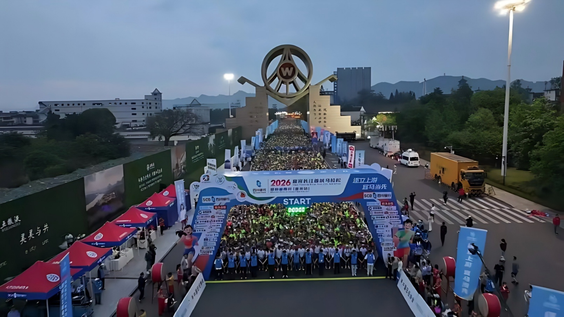 清晨6时许,五粮液旗标广场已是一片沸腾,参赛选手们从四面八方汇聚而来,资深跑者与初次挑战全马的新手并肩而立,个人爱好者与团体队伍互相加油,每个人的眼神中都跃动着自信与期待,仿佛即将奔赴的不是一场比赛,而是一场与自己的庄严约定。