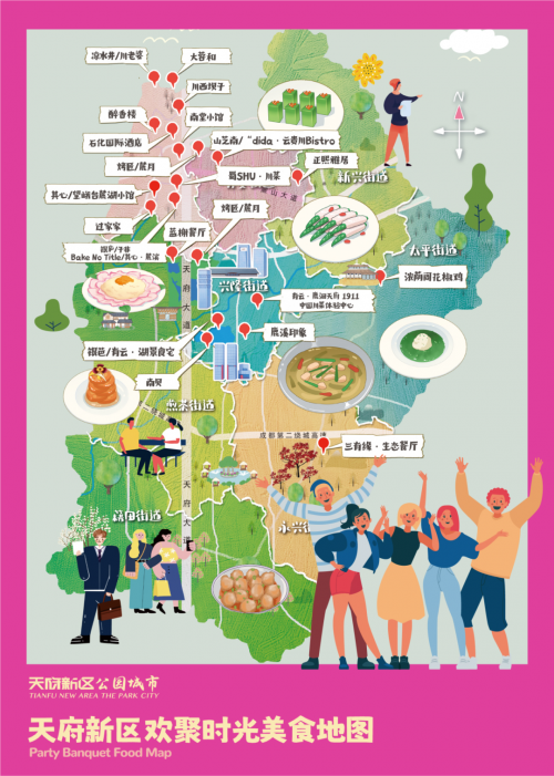 天府百味:传统川菜、浪漫西餐、东南亚风情、创意融合菜等。