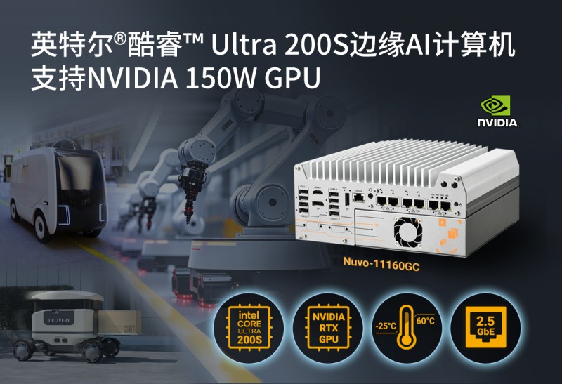 强固型嵌入式计算机厂商Neousys宸曜科技发布了一款紧凑的强固可靠型边缘AI计算机Nuvo-11160GC,专为严苛的工业和机器人应用而打造。Nuvo-11160GC搭载了英特尔® 酷睿™ Ultra 200S处理器,同时最高可支持150W NVIDIA® RTX GPU,能够在恶劣环境中为边缘端应用提供实时的人工智能推理和数据处理。Nuvo-11160GC拥有强固的机构设计、-25℃至60℃宽温运行能力和高效能CPU性能,可确保系统在复杂环境中可靠运行。