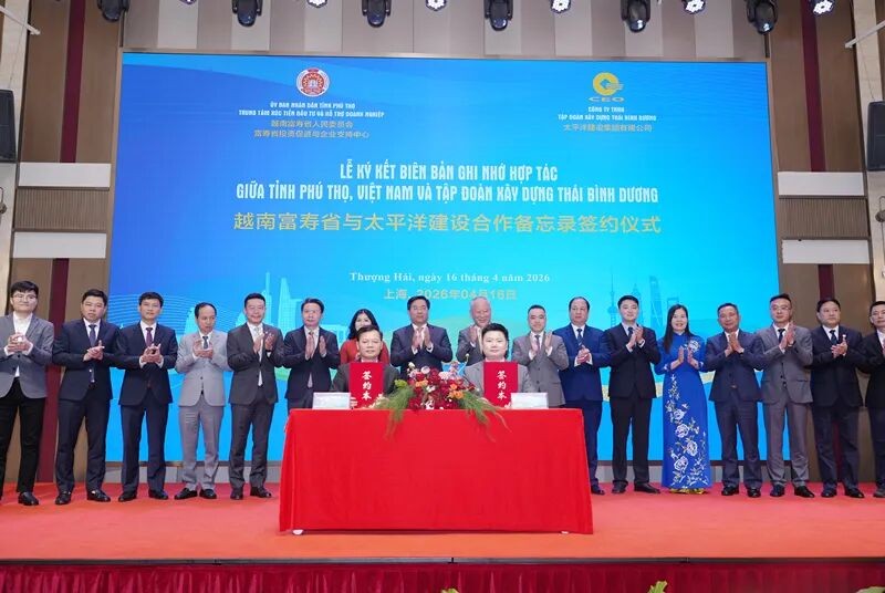 2026年4月16日,越南富寿省投资促进会议在上海成功举办。本次会议由太平洋建设承办,聚焦经贸合作、产业对接与招商引资,为中越企业搭建高效沟通平台,助力两国深化合作、共享发展机遇。会上,太平洋建设与越南富寿省正式签署合作备忘录,标志着双方战略合作进入实质落地阶段,为中越地方经贸与基础设施协同发展注入强劲动力。