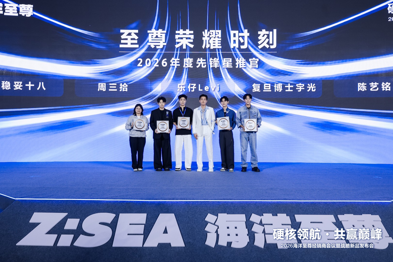至尊荣耀致敬每一位并肩同行的伙伴。现场至尊荣耀颁奖环节,品牌代言人欧豪为年度优秀内容达人主播、合作伙伴加冕。乐仔Levi、陈艺铭、复旦博士宇光、稳妥十八、周三拾等达人荣获年度先锋星推官;多位合作伙伴分获年度最具影响力零售奖、战略合作伙伴奖、年度最佳经销商奖、最具成长伙伴奖。