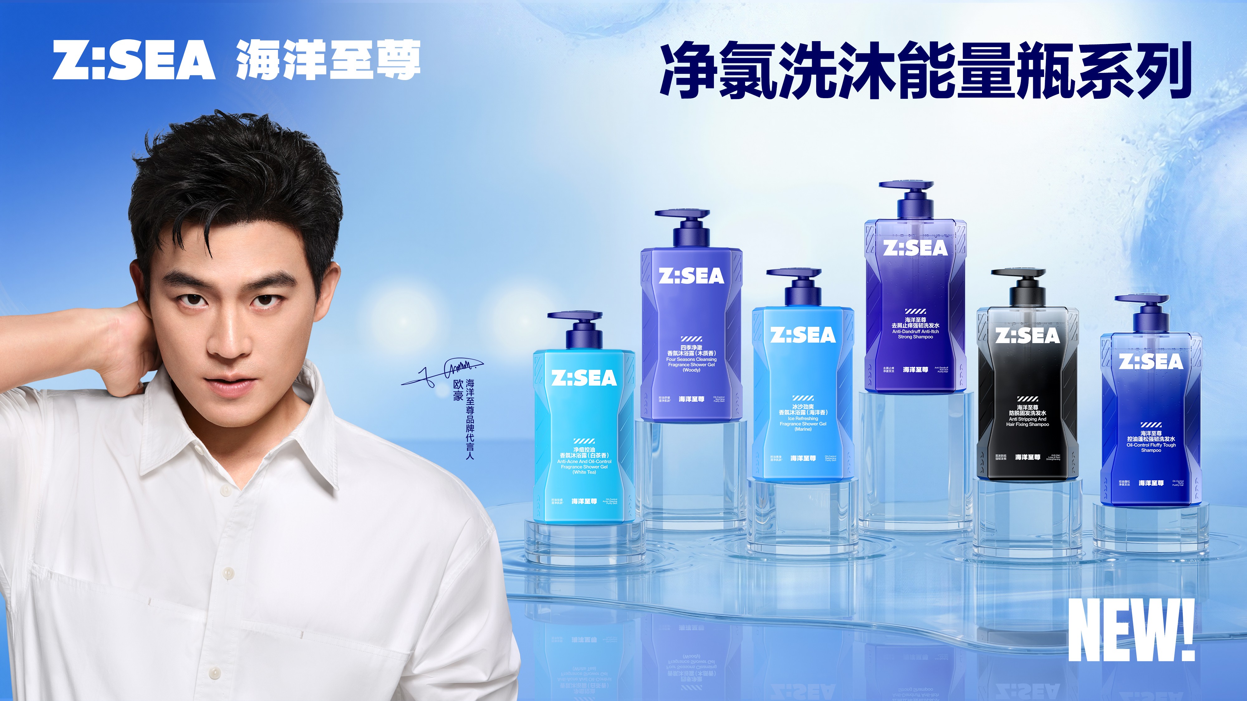 在海洋至尊品牌代言人欧豪和品牌高管的共同完成战略新品启动仪式后,海洋至尊全新“净氯洗沐能量瓶”正式上市!