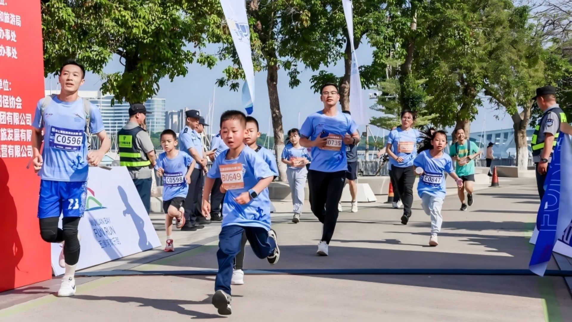 赛事期间,湖里区联合厦门银行、金门体育爱好者与旅游界推出“游金门,住湖里”文旅模式,来厦台胞可享专属住宿优惠。终点线旁,“乐游湖里,乐跑五缘”“以家之名,为爱奔跑”等主题打卡墙前人潮涌动,完赛亲子家庭跑友纷纷定格高光时刻。趣味互动专区里,孩子们专注闯关、家长们加油助阵,集章套圈的游戏区笑声不断,大家玩得尽兴而归。