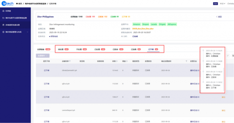 7×24小时全网监控:对Amazon、eBay等全球主流电商平台进行不间断扫描。