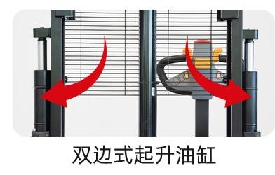新品通过货叉及提升支腿的方式,可实现同时对双托盘货物进行堆垛和搬运,效率是普通堆垛车的2倍。
