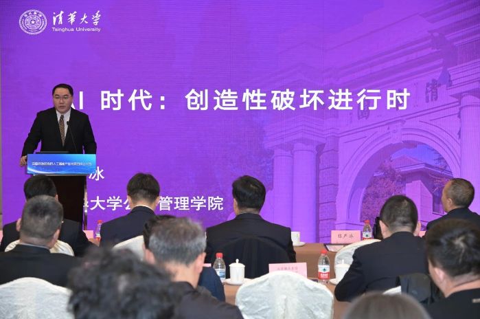 在主题演讲环节,中国科学技术大学讲席教授,科技商学院院长叶强围绕人工智能的企业创新与管理做了专题分享,从技术演进和产业变革的角度,深入分析了人工智能对管理体系重塑带来的机遇与挑战。