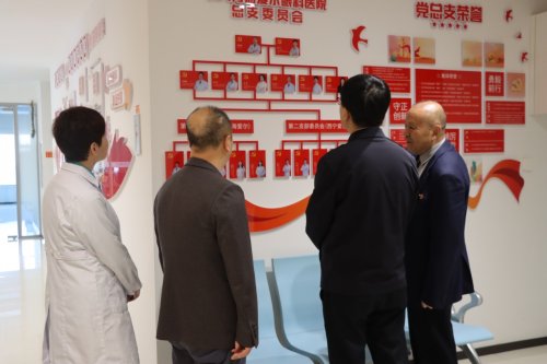 在党建活动阵地,任延明主任重点听取医院近年来党建工作开展情况,对医院创新党建工作升级版给予关注,特别是“党的建设+医疗技术+社会责任”三位一体高质量发展模式,以及“一核心、三优势、六助力”党建品牌的创建思路与实践成效,进行了深入了解。