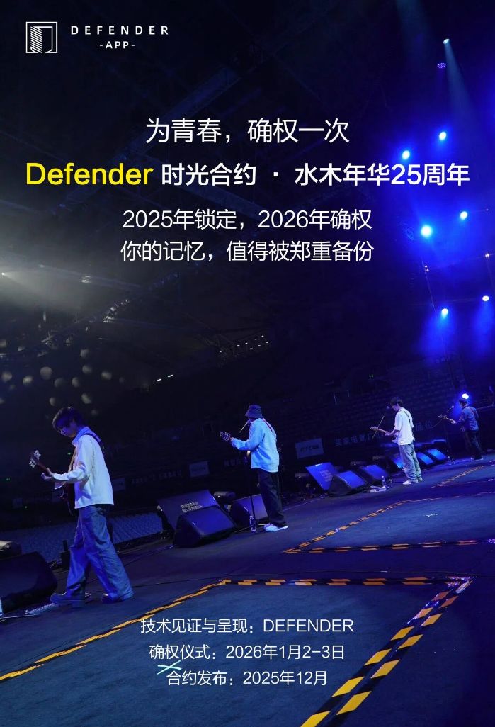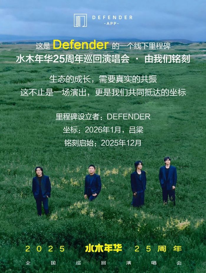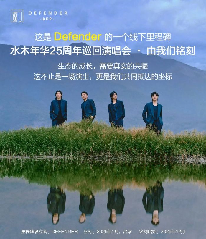 如今,水木年华携手全球数字科技平台 DEFENDER,共同开启全国巡回之旅。青春记忆与科技创新在这一刻交汇,成为跨时代的文化盛事。