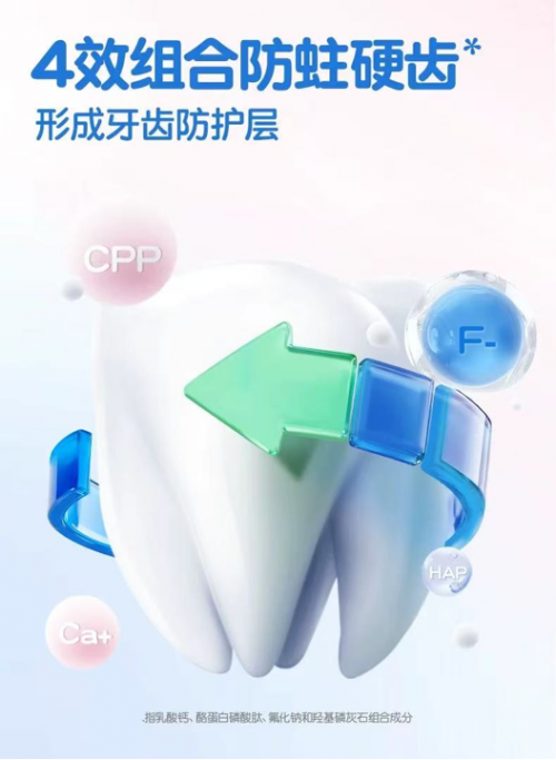 儿童口腔黏膜娇嫩,且日常饮食中糖果、甜点等含糖食物摄入较多,牙釉质面临酸性物质腐蚀的风险,口腔健康需要针对性防护。舒客宝贝深刻洞察到这点,在魔法变色牙膏中添加乳酸钙、酪蛋白磷酸肽(CPPs)、氟化钠与羟基磷灰石组成的4效防蛀健齿组合成分,为孩子的口腔健康筑起了坚实防线。
