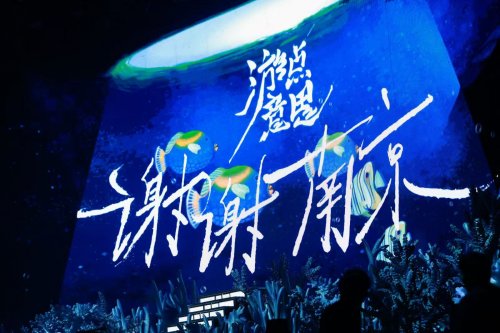 梓渝以《深海漫游指南》强势开场,迅速将观众带入情境。作为巡演的超前启航站,南京首场延续了主视觉中“鱼与海洋”的意象,将“海底世界”的舞台概念具象为沉浸式的深蓝秘境,打造出电影级沉浸感,观众在开场灯光亮起的一刻,仿佛随梓渝一同“潜入海底”。