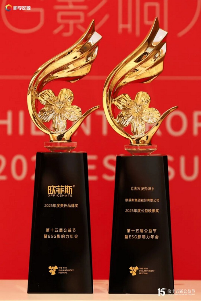在第十五届公益节暨ESG影响力年会上,欧菲斯集团凭借在社会责任领域的突出表现和创新实践,一举斩获“年度责任品牌奖” 与 “年度公益映像奖”两项重要荣誉。这不仅是对集团过往公益工作的高度认可,更是对其在品牌责任建设与公益形象塑造方面的充分肯定。